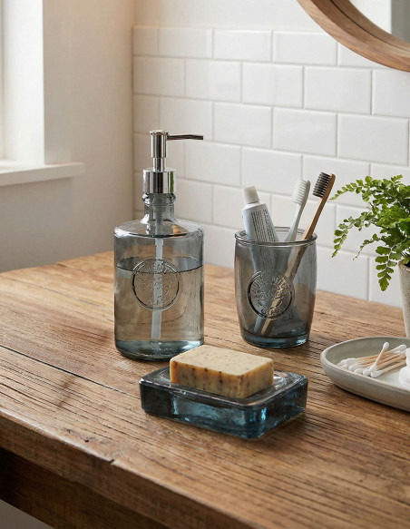 Notre gamme d'accessoires en verre pour la salle de bain est produite à 100% à partir de verre recyclé. En recyclant le verre des produits que nous n’utilisons plus, nous aidons à réduire notre empreinte carbone et donc, de préserver notre planète.