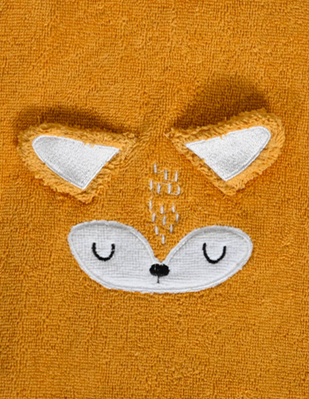 Plongez dans l'univers de l'élégance ludique avec notre collection LITTLE FOXY. Cette cape de bain est dotée d'une broderie détaillée représentant un renard assoupi avec ses oreilles en 3D. Chaque cape de bain accompagne votre enfant lors de ses sorties de bain, alliant un charme intemporel grâce à sa broderie et sa composition 100% coton ultradoux et absorbant.