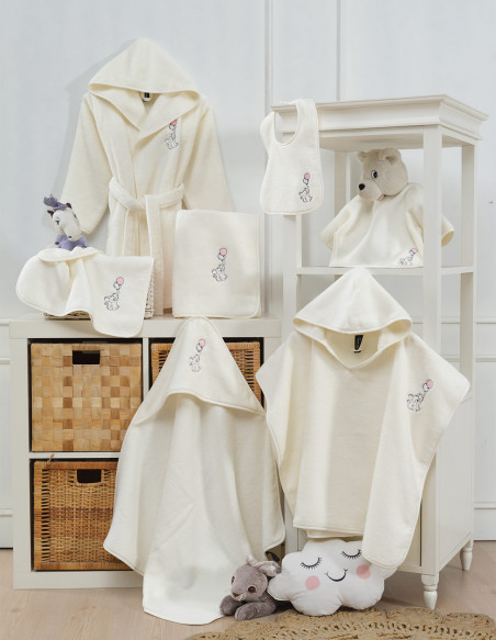 La cape de bain BABY SOFT OURS est disponible en taille 90x90cm en deux couleurs : nude et ecru.