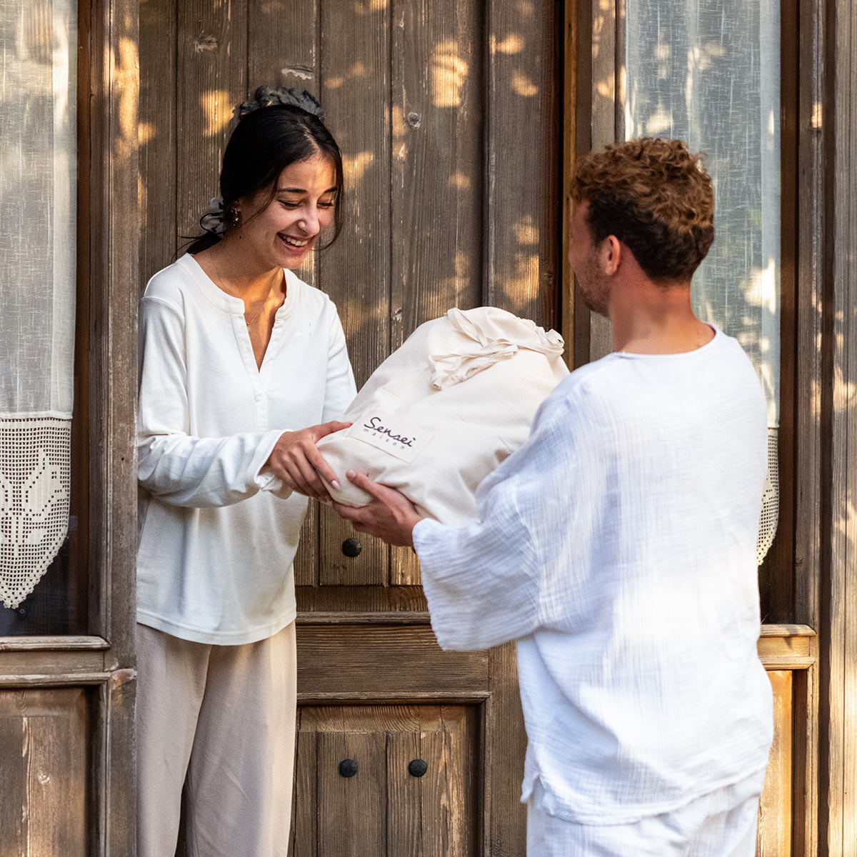 Nous confectionnons nos produits principalement en Turquie et en Inde, deux berceaux historiques du textile où le savoir-faire se transmet de génération en génération. La Turquie, réputée pour ses cotons d'exception et son expertise en tissage, et l'Inde, avec sa tradition textile millénaire, nous permettent d'allier qualité et authenticité. Nous avons fait le choix de la fidélité : nos ateliers sont des partenaires de longue date, avec lesquels nous avons tissé des relations de confiance et de respect mutuel. Cette collaboration durable nous permet d'assurer une régularité dans la qualité et de garantir des conditions de travail conformes aux standards internationaux. Nous exigeons de tous nos partenaires le respect du droit du travail et des conditions dignes pour chaque personne qui contribue à la création de vos produits Sensei Maison.
