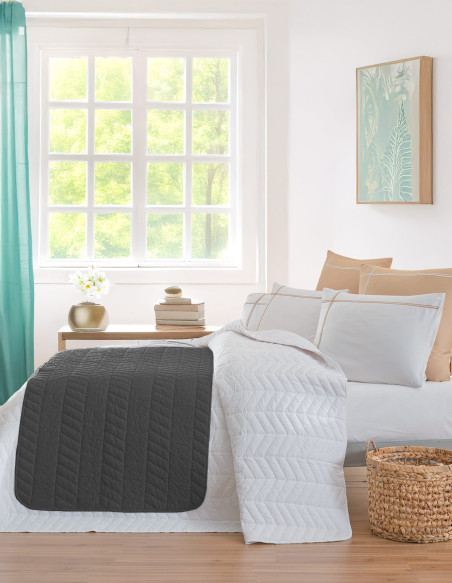 Chemin de lit en percale de coton surpiqué CHEVRON