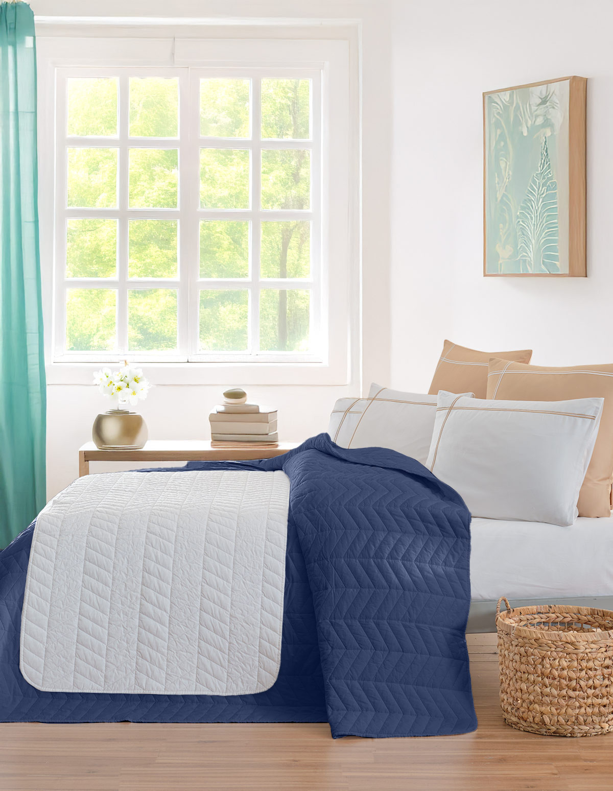 Chemin de lit en percale de coton surpiqué CHEVRON