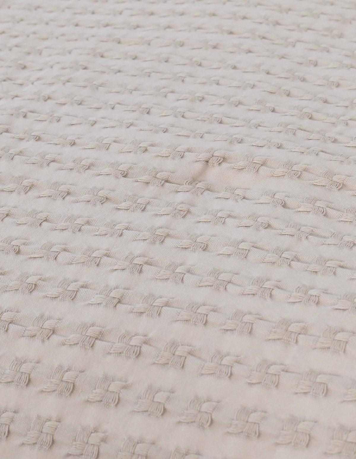 Ce couvre-lit WAFFLE se distingue par son tissu en coton structuré gaufré qui combine douceur et caractère. Son motif en relief, discret mais élégant, capte la lumière et donne du cachet à votre literie. Léger et respirant, il est parfait pour la mi-saison ou pour habiller votre lit toute l’année.