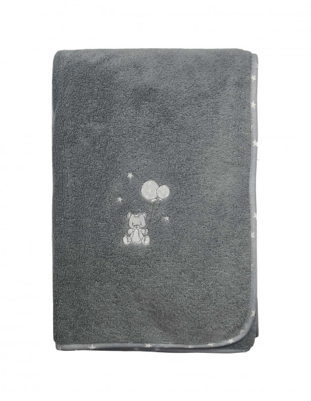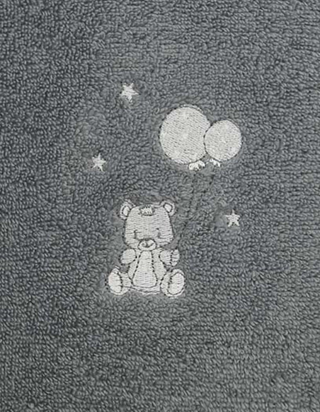 Offrez une sensation de tendresse à votre petit ourson tout mignon, en le recouvrant à chaque sortie de son bain avec le drap de bain BABY SOFT 100 % coton brodé d’un petit ourson tenant des ballons.