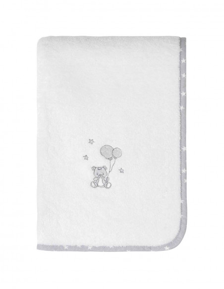 Offrez une sensation de tendresse à votre petit ourson tout mignon, en le recouvrant à chaque sortie de son bain avec le drap de bain BABY SOFT 100 % coton brodé d’un petit ourson tenant des ballons.