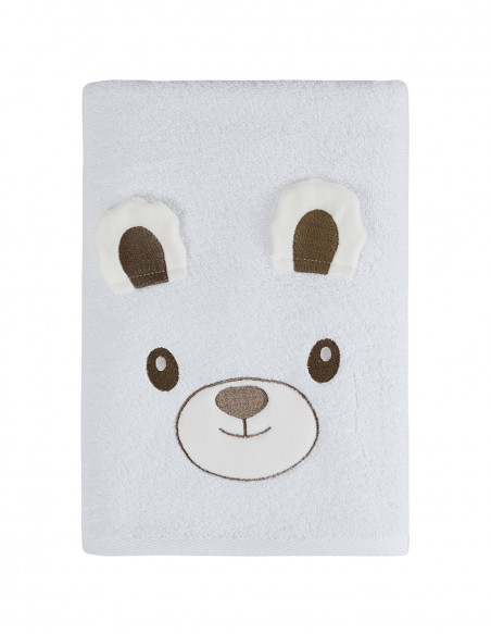Enveloppez votre enfant dans le drap de bain BOBBY L'OURS ! Intensément moelleux, lui et le petit ours qui l’agrémente accompagneront votre enfant après son bain.