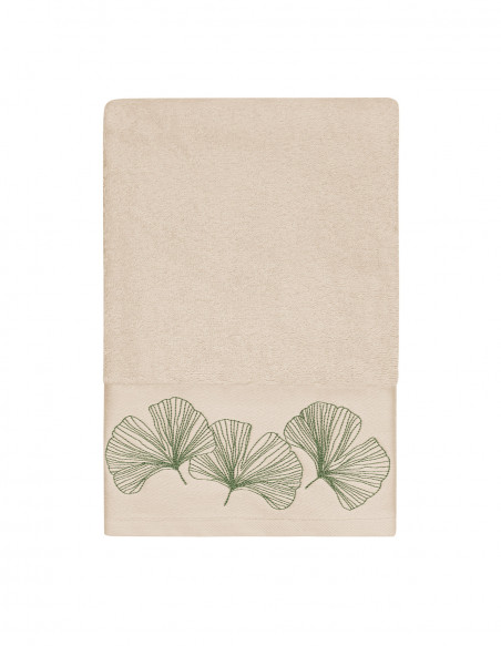Plongez dans le luxe et l'élégance naturelle avec notre drap de bain de qualité NOA GINKGO, délicatement brodé de feuilles de ginkgo pour une expérience apaisante et raffinée à chaque utilisation.