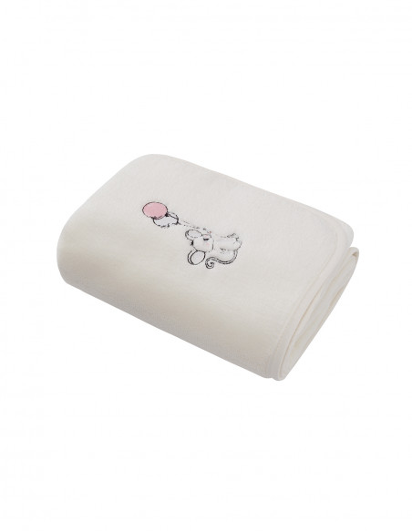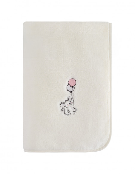 Offrez une sensation de tendresse à votre enfant, en le recouvrant à chaque sortie de son bain avec le drap de bain BABY SOFT 100 % coton brodé d’un petite souris tenant des ballons.