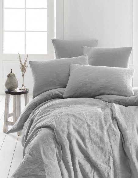 Tissé en 160 gr/m², le gaze de coton est un tissus qui permet un très bon équilibre entre fraîcheur et confort, et dont l'aspect froissé conviendra aux intérieurs modernes ou plus classiques. Notre tissu est en double gaze de coton pour garantir plus de confort et de résistance.