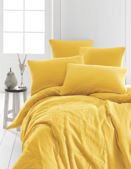 Tissé en 160 gr/m², le gaze de coton est un tissus qui permet un très bon équilibre entre fraîcheur et confort, et dont l'aspect froissé conviendra aux intérieurs modernes ou plus classiques. Notre tissu est en double gaze de coton pour garantir plus de confort et de résistance.