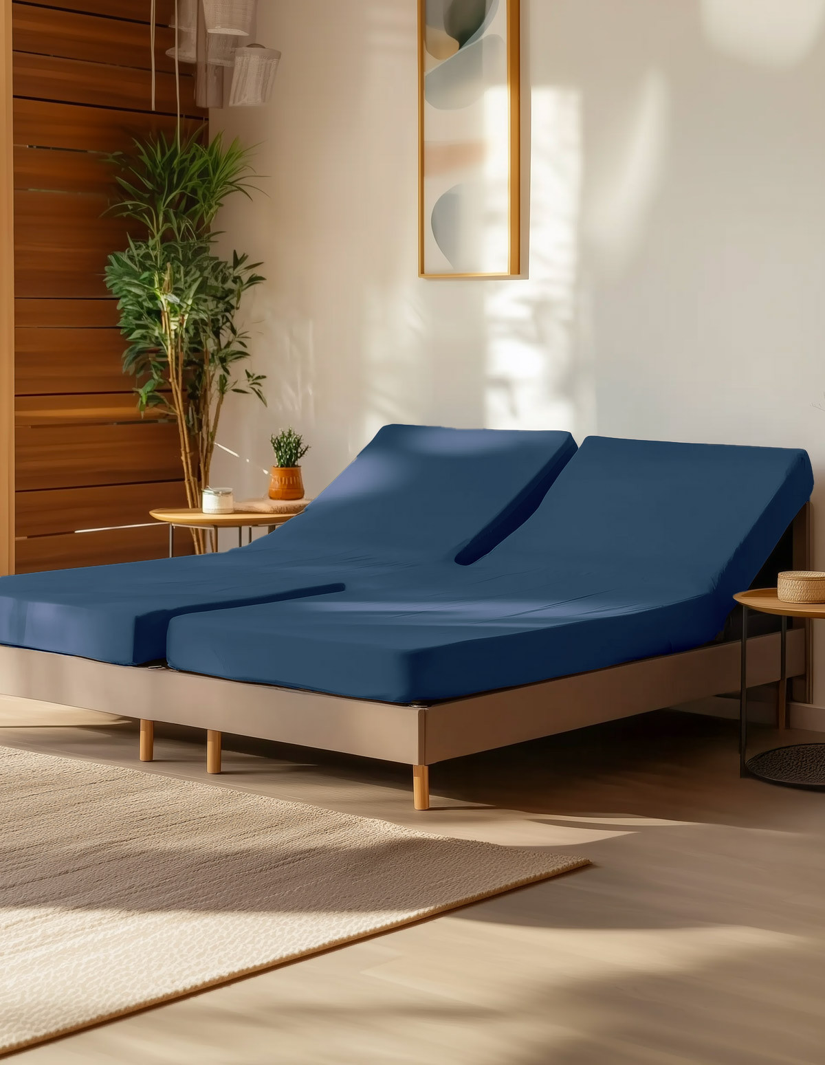 Ce drap housse est conçu pour les sommiers avec tête et pieds relevables pour 2 matelas articulés de 70 cm, 80 cm ou 90 cm de largeur chacun.