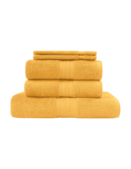 Proposé dans plusieurs couleurs, ce lot de 5 pièces d'éponge de bain LUXURY est composé de 2 gants de toilette, 2 serviettes de toilette 50x100 cm et 1 serviette de bain 70x140 cm. Un pack idéal à offrir ou s’offrir !