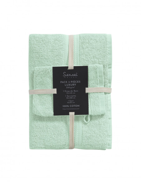 Ensemble de bain 3 pièces (1 drap de bain + 1 serviette de toilette + 1 gant) LUXURY