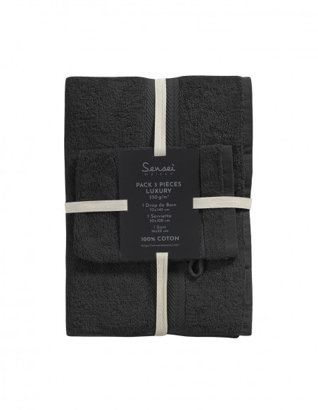 Ensemble de bain 3 pièces (1 drap de bain + 1 serviette de toilette + 1 gant) LUXURY