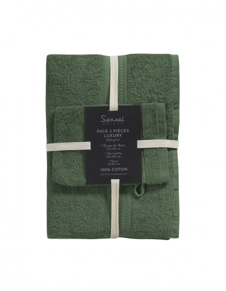 Ensemble de bain 3 pièces (1 drap de bain + 1 serviette de toilette + 1 gant) LUXURY