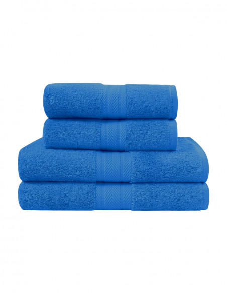 Ne cherchez plus, et venez découvrir le lot de 4 pièces d'éponge de bain composé de 2 serviettes de toilette 50x100cm et 2 draps de bain 70x140cm. Pour se sécher les mains et les cheveux, ou en sortie de bain, ce pack de salle de bain est idéal pour les besoins de toute la famille. Il est constitué d'une éponge tissée en 550 gr/m² ce qui lui procure une excellente absorption et une douceur extrême. Un pack idéal à offrir ou s’offrir !