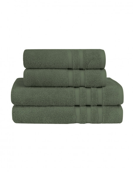 Découvrez le lot de 4 pièces de serviettes de bain composé de 2 serviettes de toilette 50x100cm et 2 draps de bain 70x140cm. Pour se sécher les mains et les cheveux, ou en sortie de bain, ce pack convient à tous vos besoins pour votre salle de bain. Il est constitué d'une éponge tissée en 600 gr/m² ce qui lui procure une excellente absorption et une douceur extrême.  Un pack idéal à offrir ou s’offrir !