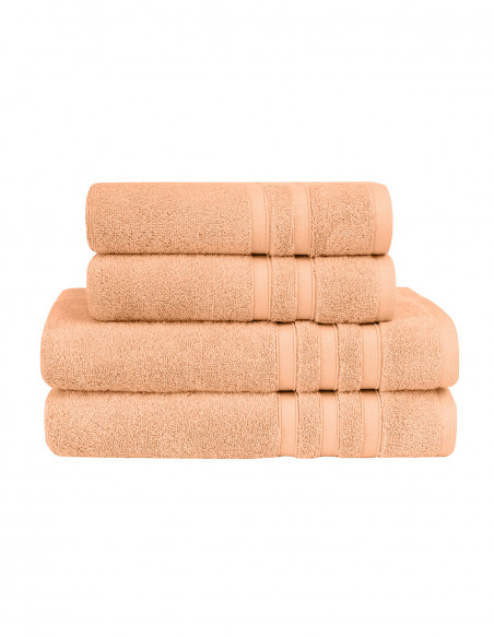 Découvrez le lot de 4 pièces de serviettes de bain composé de 2 serviettes de toilette 50x100cm et 2 draps de bain 70x140cm. Pour se sécher les mains et les cheveux, ou en sortie de bain, ce pack convient à tous vos besoins pour votre salle de bain. Il est constitué d'une éponge tissée en 600 gr/m² ce qui lui procure une excellente absorption et une douceur extrême.  Un pack idéal à offrir ou s’offrir !