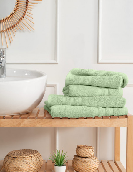 Découvrez le lot de 4 pièces de serviettes de bain composé de 2 serviettes de toilette 50x100cm et 2 draps de bain 70x140cm. Pour se sécher les mains et les cheveux, ou en sortie de bain, ce pack convient à tous vos besoins pour votre salle de bain. Il est constitué d'une éponge tissée en 600 gr/m² ce qui lui procure une excellente absorption et une douceur extrême.  Un pack idéal à offrir ou s’offrir !