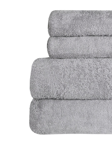 Le lot de 4 pièces éponge STUDIO est composé de 2 serviettes de toilette (50x90 cm) et de 2 draps de bain (70x130 cm).