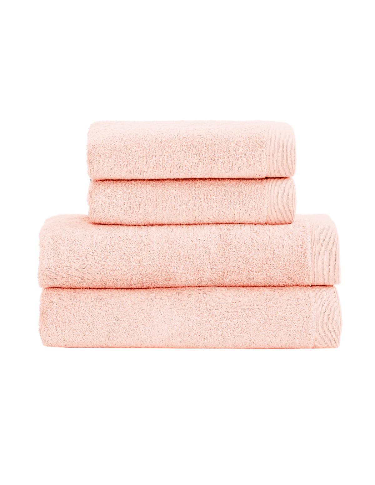 Le lot de 4 pièces éponge STUDIO est composé de 2 serviettes de toilette (50x90 cm) et de 2 draps de bain (70x130 cm).