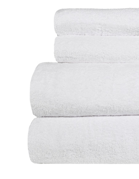 Le lot de 4 pièces éponge STUDIO est composé de 2 serviettes de toilette (50x90 cm) et de 2 draps de bain (70x130 cm).