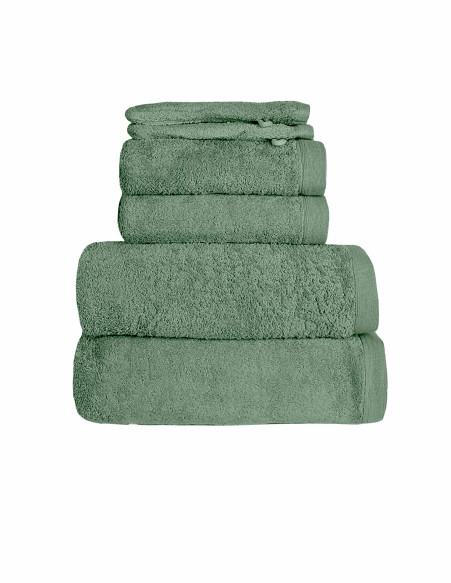Le lot de 6 pièces éponge STUDIO est composé de 2 serviettes de toilette (50x90 cm), 2 draps de bain (70x130 cm) et de 2 gants.