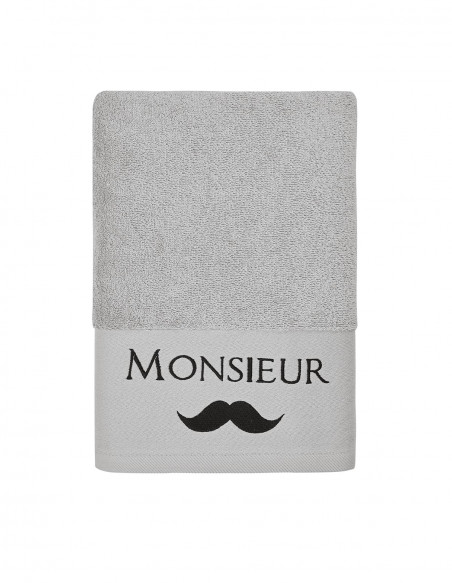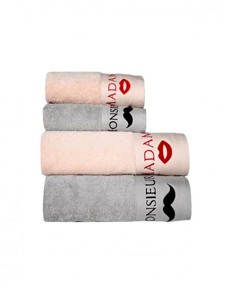 Ensemble de bain brodé 4 pièces MADAME & MONSIEUR (2 draps de bain + 2 serviettes de toilette)