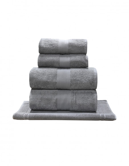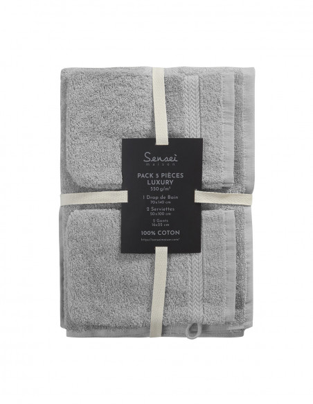 Ne cherchez plus, et venez découvrir le lot de bain et tapis 5 pièces Luxury composé de 2 serviettes de toilette 50x100 cm, 2 draps de bain 70x140 cm et 1 tapis 50x80 cm. Pour se sécher les mains et les cheveux, ou en sortie de bain, ce pack de salle de bain est idéal pour les besoins de toute la famille. Les serviettes sont tissées en 550 gr/m² ce qui leur procure une excellente absorption et une douceur extrême et le tapis en 900 g/m².  Un pack idéal à offrir ou s’offrir !