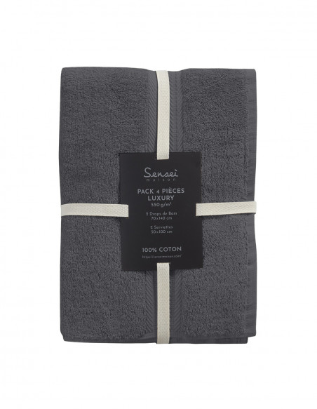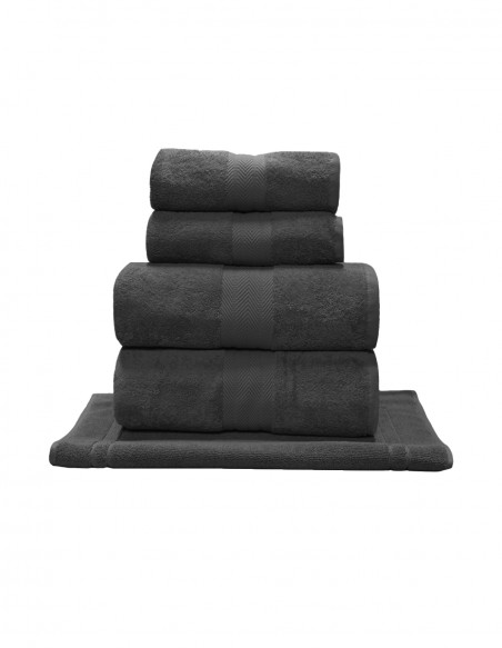 Ne cherchez plus, et venez découvrir le lot de bain et tapis 5 pièces Luxury composé de 2 serviettes de toilette 50x100 cm, 2 draps de bain 70x140 cm et 1 tapis 50x80 cm. Pour se sécher les mains et les cheveux, ou en sortie de bain, ce pack de salle de bain est idéal pour les besoins de toute la famille. Les serviettes sont tissées en 550 gr/m² ce qui leur procure une excellente absorption et une douceur extrême et le tapis en 900 g/m².  Un pack idéal à offrir ou s’offrir !