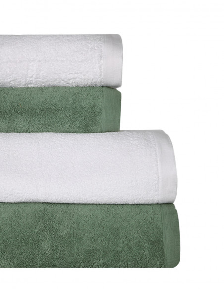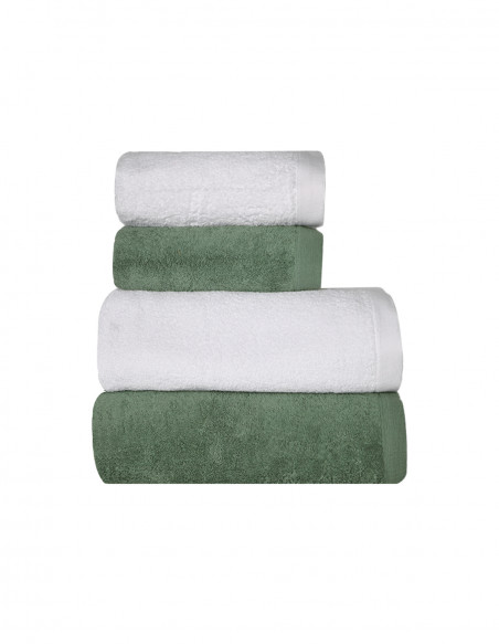 Le lot de 4 pièces éponge STUDIO est composé de 2 serviettes de toilette (50x90 cm) et de 2 draps de bain (70x130 cm) de 2 couleurs différentes,