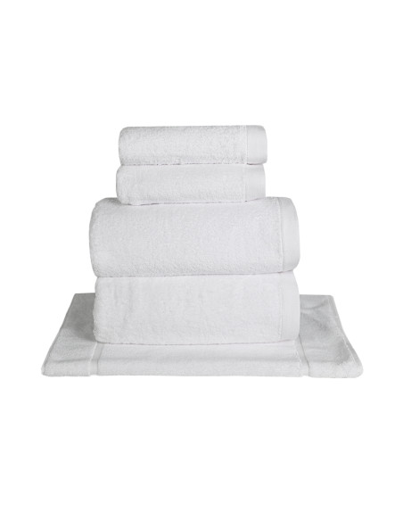Cet ensemble STUDIO est composé de 5 pièces: 2 serviettes de toilette (50x90 cm), 2 draps de bain (70x130 cm) et 1 tapis de bain (50x70 cm)