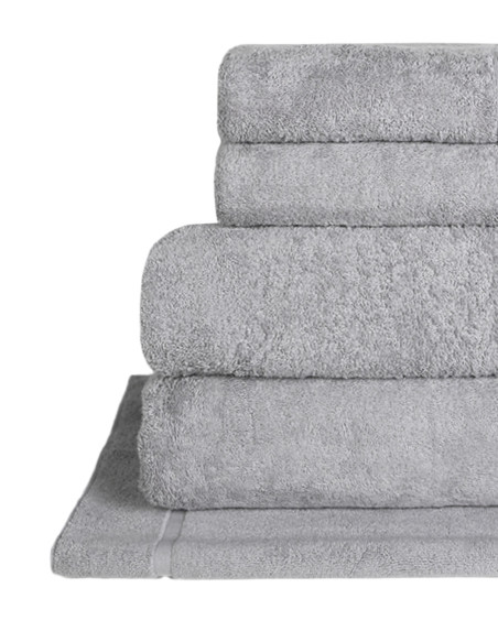 Cet ensemble STUDIO est composé de 5 pièces: 2 serviettes de toilette (50x90 cm), 2 draps de bain (70x130 cm) et 1 tapis de bain (50x70 cm)