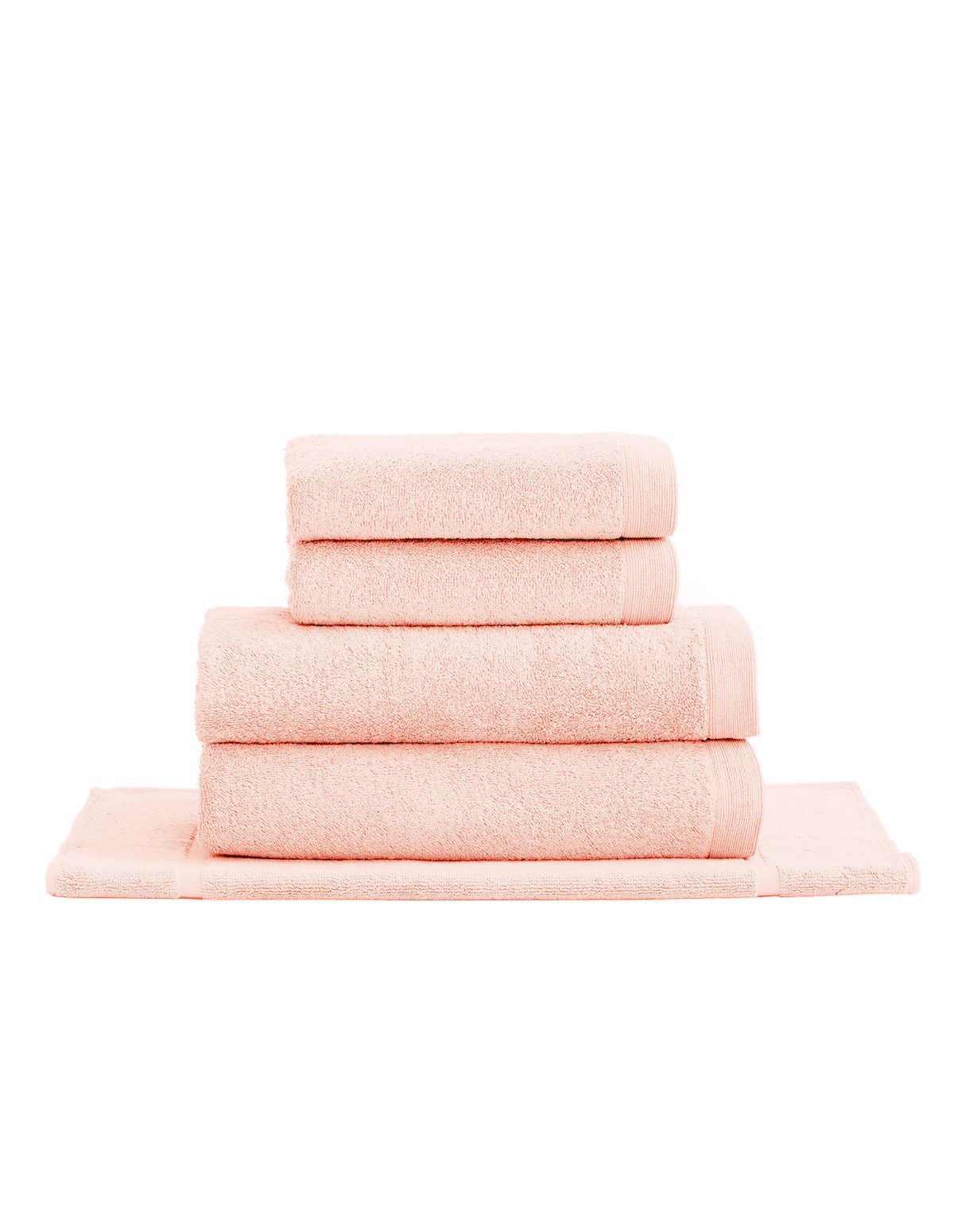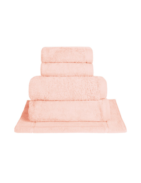 Cet ensemble STUDIO est composé de 5 pièces: 2 serviettes de toilette (50x90 cm), 2 draps de bain (70x130 cm) et 1 tapis de bain (50x70 cm)