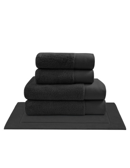 Découvrez le lot 5 pièces d'ensemble de bain composé de 2 serviettes de toilette 50x100cm, de 2 draps de bain 70x140cm et d'un grand tapis 60x100cm. Pour se sécher les mains et les cheveux, ou en sortie de bain, ce pack convient à tous vos besoins pour votre salle de bain. Il est constitué d'une éponge tissée en 560 gr/m² ce qui lui procure une excellente absorption et une douceur extrême, et le tapis est en 1100 g/m². Un pack idéal à offrir ou s’offrir !