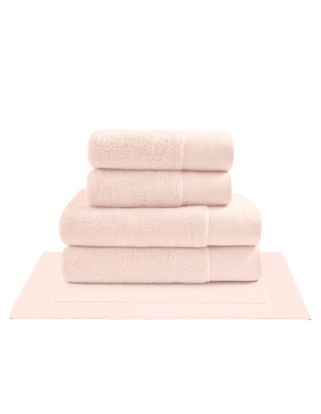Découvrez le lot 5 pièces d'ensemble de bain composé de 2 serviettes de toilette 50x100cm, de 2 draps de bain 70x140cm et d'un grand tapis 60x100cm. Pour se sécher les mains et les cheveux, ou en sortie de bain, ce pack convient à tous vos besoins pour votre salle de bain. Il est constitué d'une éponge tissée en 560 gr/m² ce qui lui procure une excellente absorption et une douceur extrême, et le tapis est en 1100 g/m². Un pack idéal à offrir ou s’offrir !
