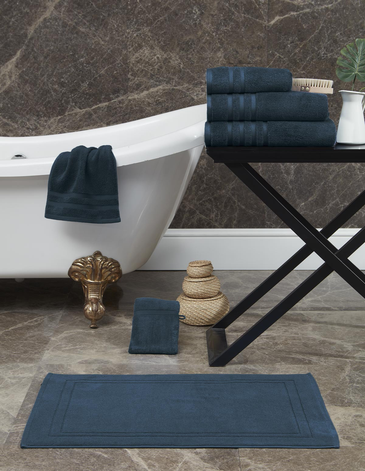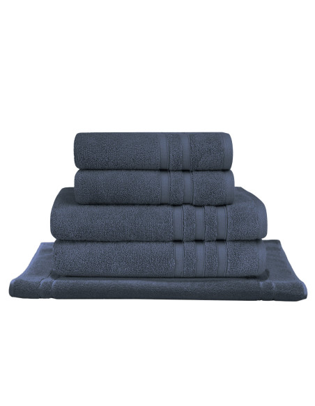 • Set complet 5 pièces : 2 serviettes 50x100 cm, 2 draps de bain 70x140 cm et 1 tapis 50x80 cm