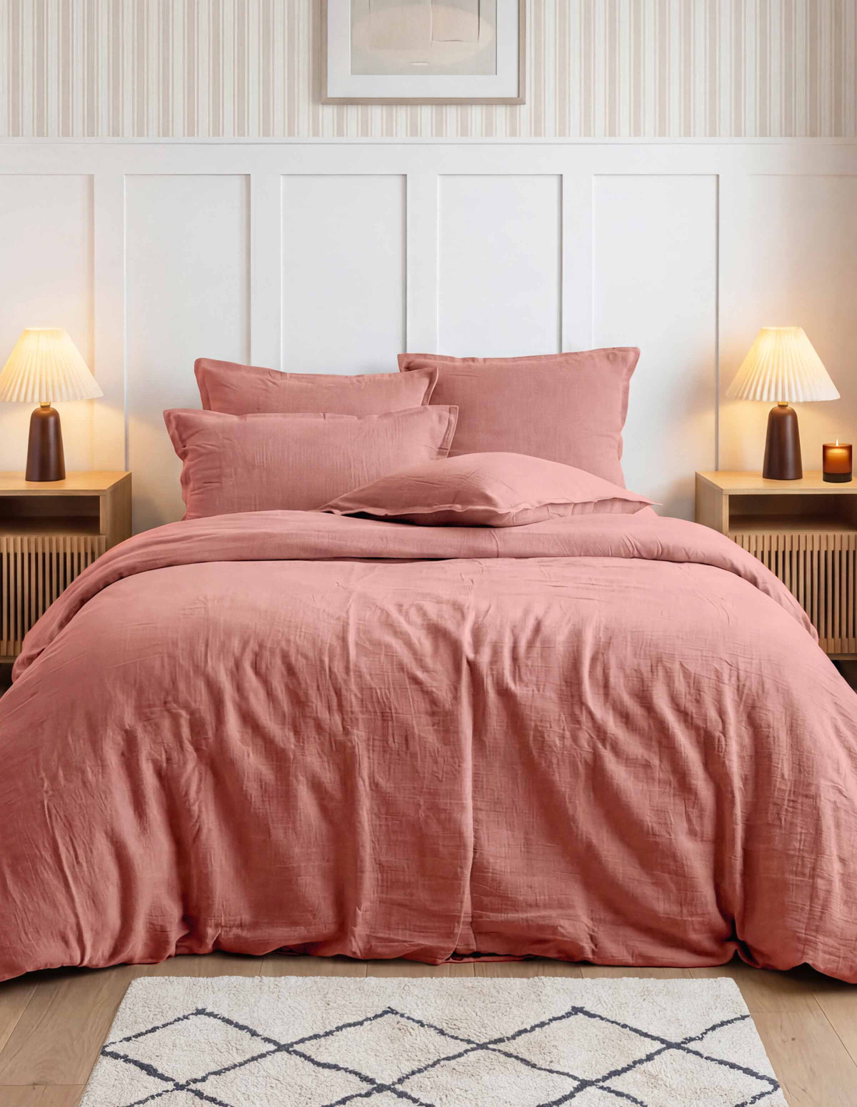 À 160 gr/m², la gaze respire parfaitement, garantissant une couette aérée. Parfait pour ceux qui refusent les finitions trop parfaites et cherchent du caractère dans leur décoration.