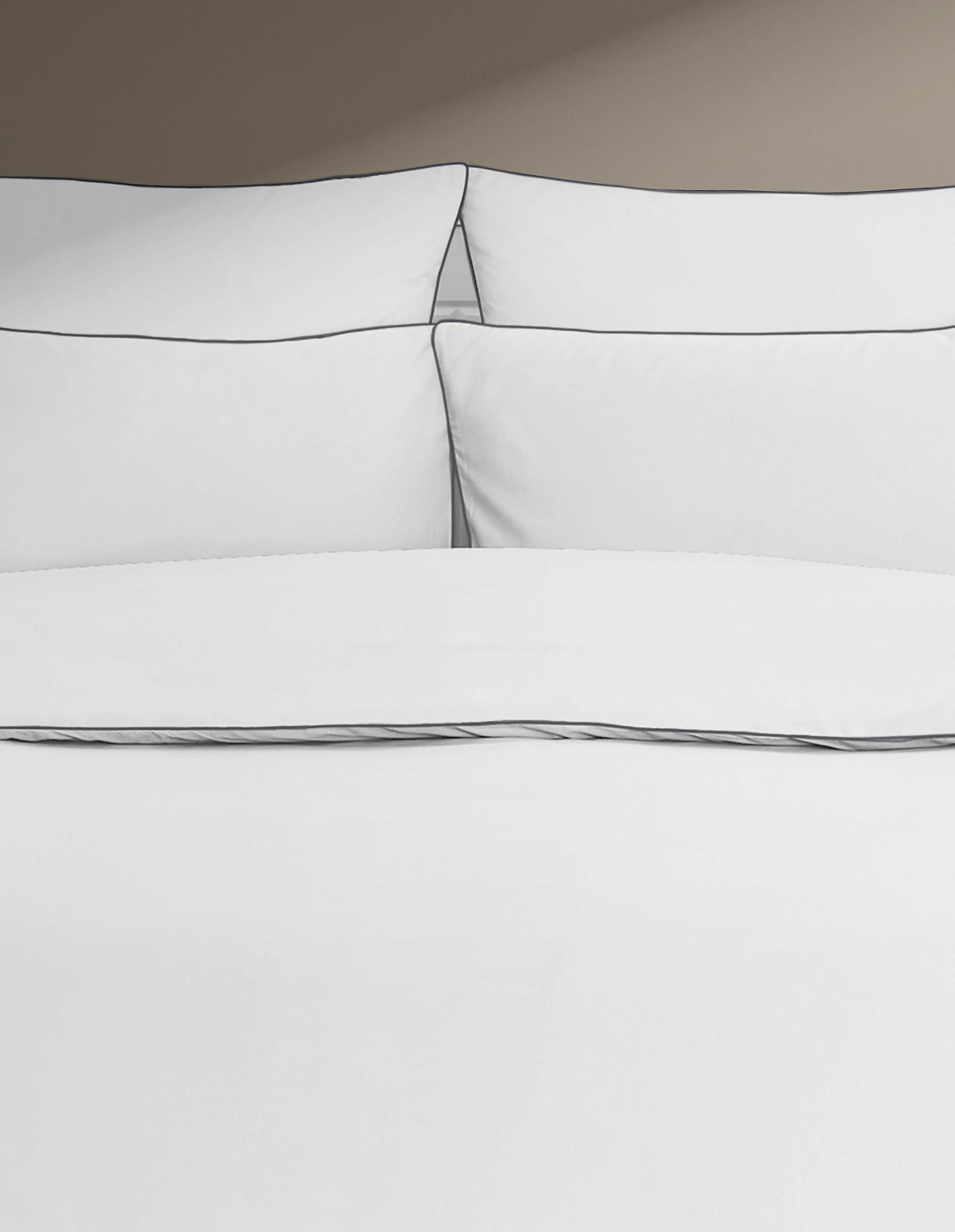 Elle est confectionnée avec un élégant passepoil de couleur qui vient rehausser sa finition. Dotée du traitement Easy Care qui est un traitement appliqué au linge de lit pour faciliter l'entretien et réduire le froissage. Le repassage sera beaucoup plus facile.