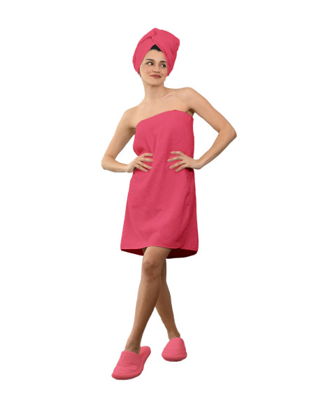 Restez coquette même lorsque vous vous préparez avec cette silhouette 3 pièces dans laquelle vous serez ravissante et au chaud (420gr/m²). Se maquiller et se coiffer dans sa chambre directement après le bain est maintenant possible !