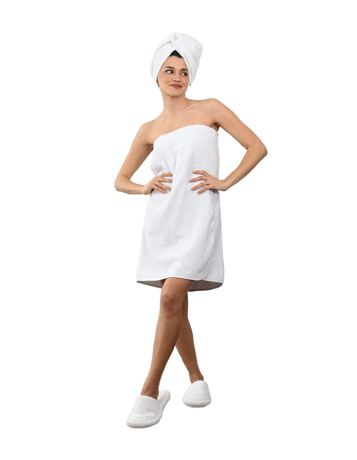 Cet ensemble 100% coton de qualité s'enveloppera comme une seconde peau à la sortie de votre bain.