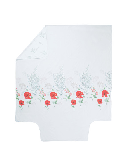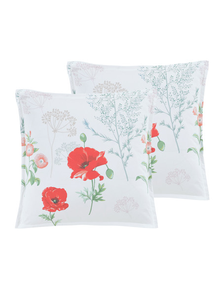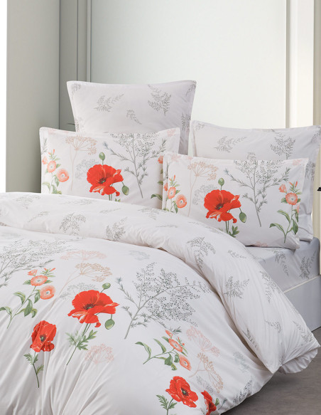 Apportez une touche de fraîcheur printanière à votre chambre avec notre collection AURORE en percale de coton, ornée de motifs floraux avec des coquelicots rouges sur la face et des brins de fleurs sur l'envers.