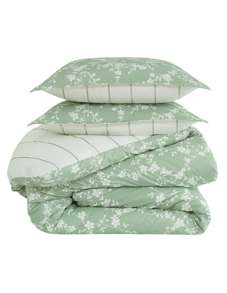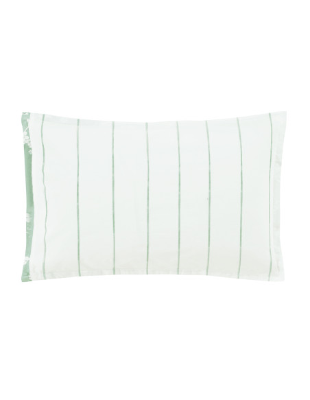 Intégrez une ambiance naturelle et apaisante dans votre chambre avec notre collection MAYA en percale de coton, sublimée par de délicates branches fleuries sur la face et de fines rayures vertes à l'envers. Offrez à votre espace une touche de fraîcheur et de sérénité inspirée par la nature.