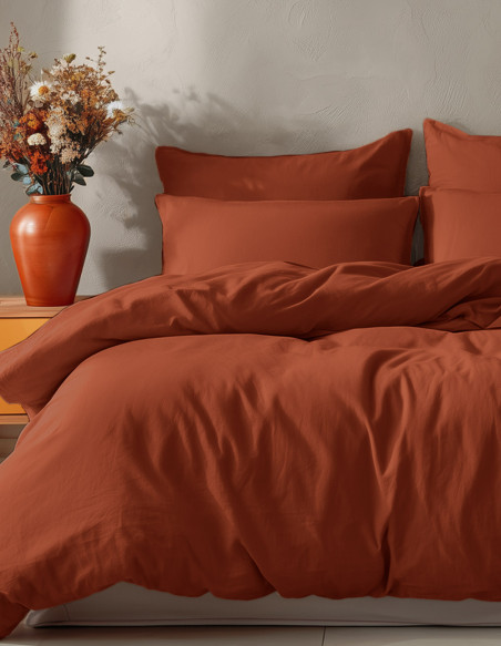 Cet ensemble de 3 pièces se compose d'une housse de couette avec choix de dimensions (140x200 cm, 200x200 cm, 240x220 cm, 260x240 cm) et de 2 taies d’oreiller carrées 65x65 cm.