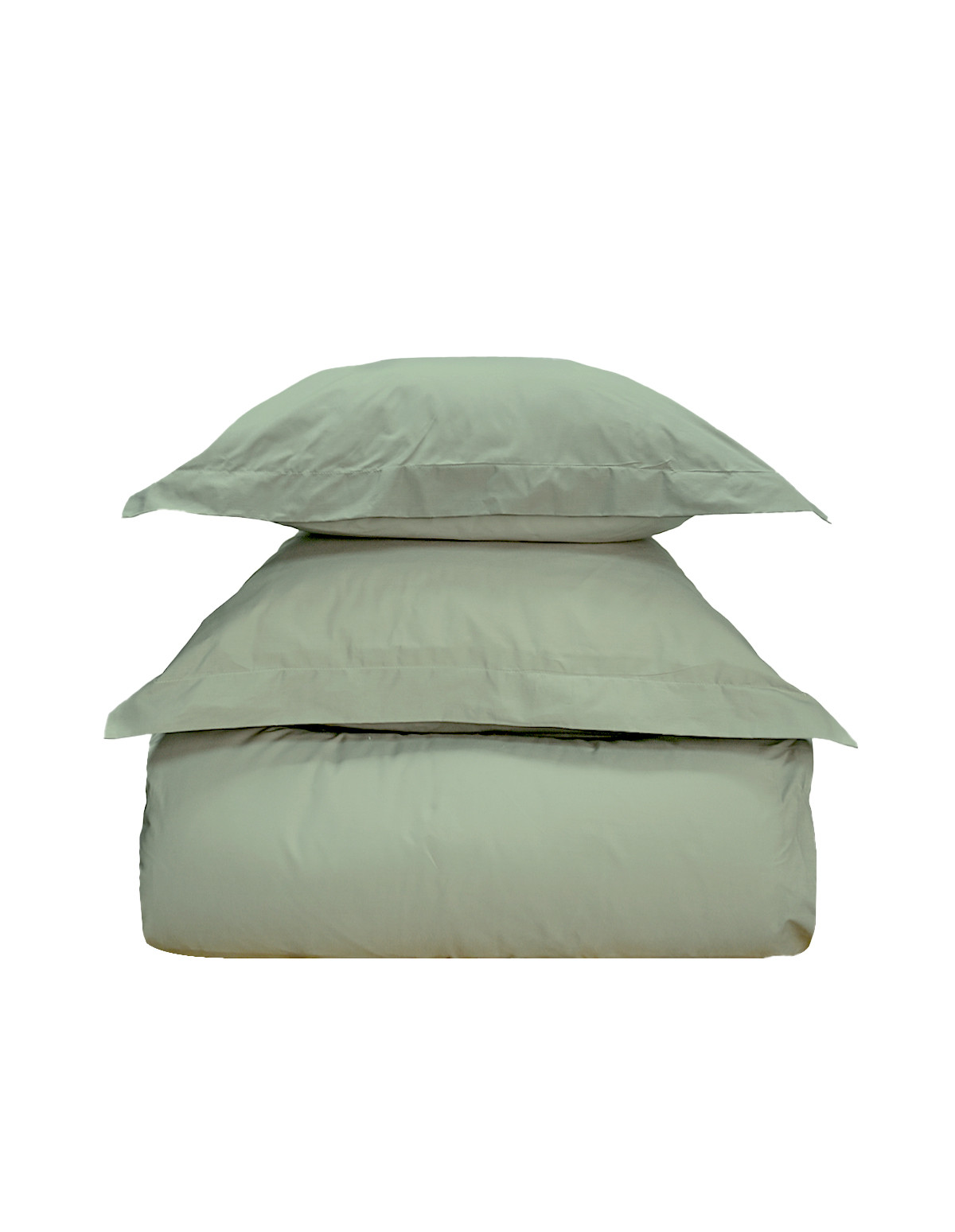 Cet ensemble de 3 pièces se compose d'une housse de couette avec choix de dimensions (140x200 cm, 200x200 cm, 240x220 cm, 260x240 cm) et de 2 taies d’oreiller carrées 65x65 cm.