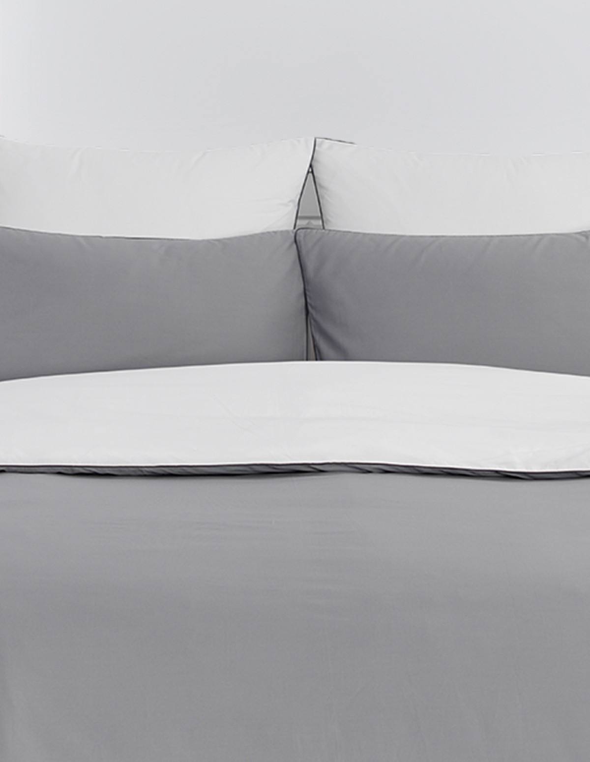 Les housses et couettes sont disponibles en plusieurs versions bicolores, et sont confectionnée avec un élégant passepoil de couleur qui vient rehausser leur finition.