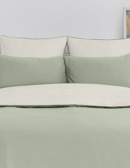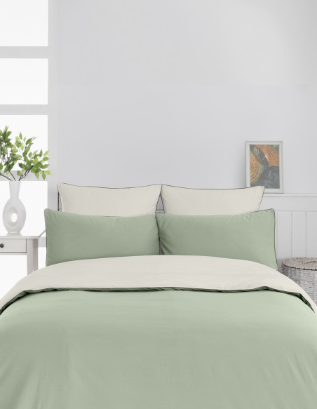Parure housse de couette bicolore + 2 taies 50x70 cm percale DOZMARY