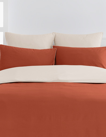 Parure housse de couette bicolore + 2 taies 50x70 cm percale DOZMARY