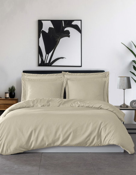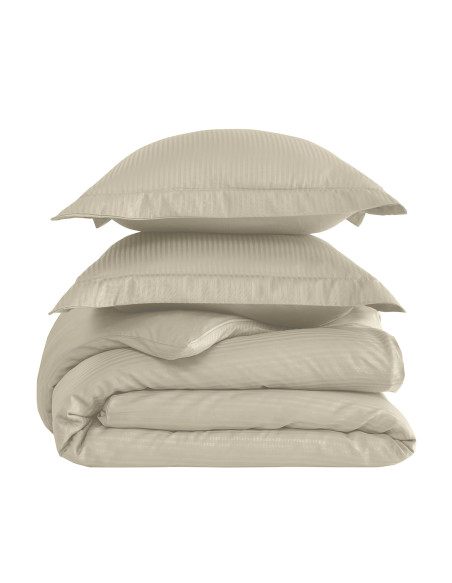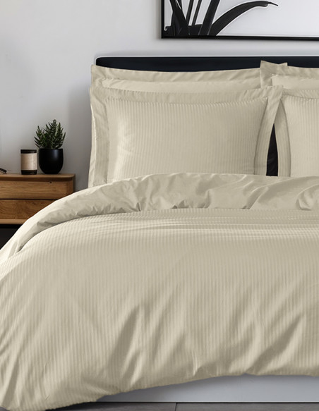 Parure housse de couette rayée satin + 2 taies 65x65 cm VERSALUXE