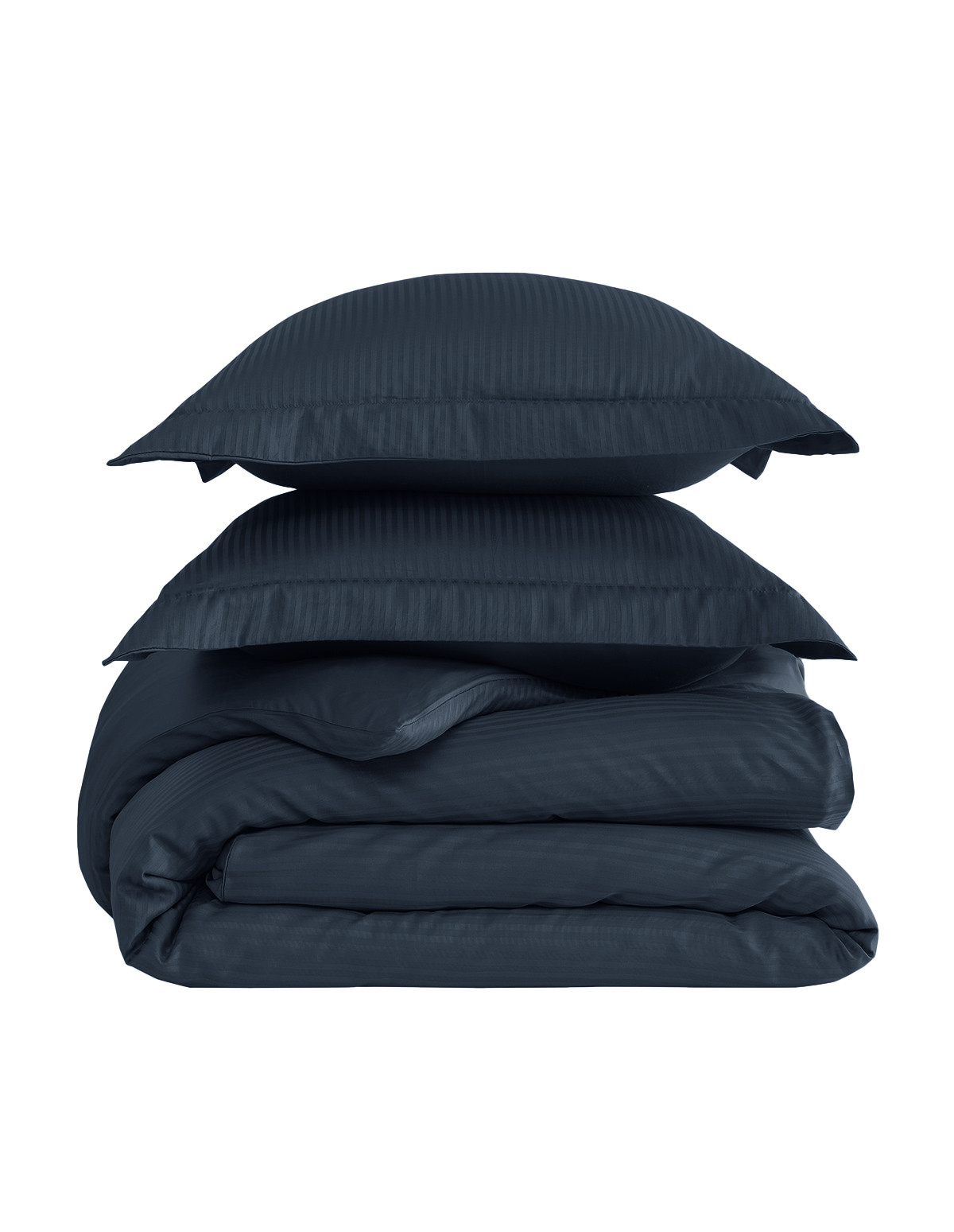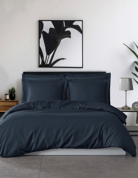 Parure housse de couette rayée satin + 2 taies 65x65 cm VERSALUXE